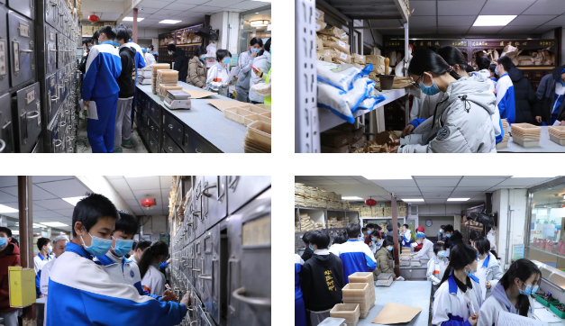 师生们走进中药房,在药剂师的指导下,尝试使用铜钟捣药,体验中药调配过程。大家通过动手实践,不仅了解了药剂师的基本操作,也体会到中医药文化中“严谨细致、精益求精”的精神。