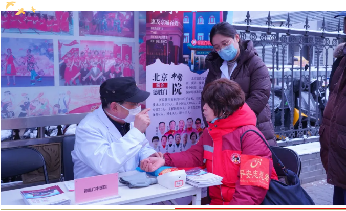 活动当天,一场春雪悄然降临京城,气温骤降,寒意袭人。然而,恶劣的天气并未阻挡医护人员服务社区居民的热情。北京德胜门中医院中医科吴斌儒医生带领义诊团队早早来到现场,迅速布置妥当并投入工作。尽管双手被冻得通红,身体在寒风中微微颤抖,但他们脸上的笑容依旧温暖,服务热情丝毫未减。