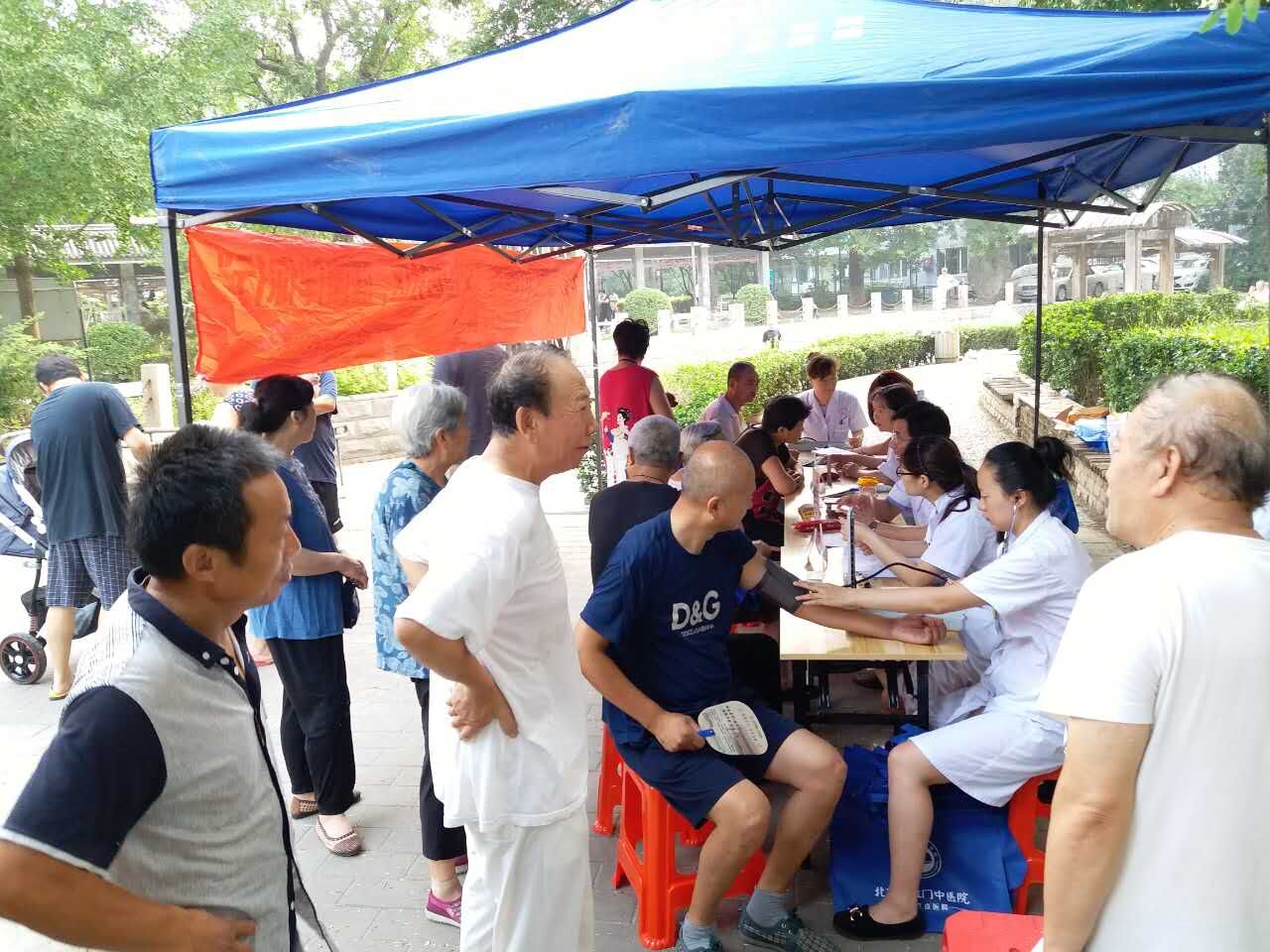 北京德胜门中医院自7月以来,先后在(东城区和平里兴化东里、和平里社区、青年湖公园、玫瑰园、海运仓、元大都牡丹园、志强北园、芍药社区、和平里2区、北滨河公园、时代之光社区、笑祖塔院社区居委会、双秀公园、健康讲堂、海淀区双榆树南里二区、丰台大红门建欣苑四里、人定湖公园东门、和平里乒乓球比赛、海淀区双榆树燕山大酒店、双榆树公园、丰台区马家堡嘉园三里、朝阳区农光东里)等地进行健康义诊,让优质的医疗资源走近百姓、贴近百姓。