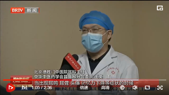 北京德胜门中医院耳科主任王英:“当出现耳鸣,耳聋,头痛,记忆力下降等症状的时候,就应该考虑是耳朵出了问题。应该及时到正规的专科医院进行诊治。因为如果一旦延误病情,就会对耳朵的听力造成严重的损伤。”