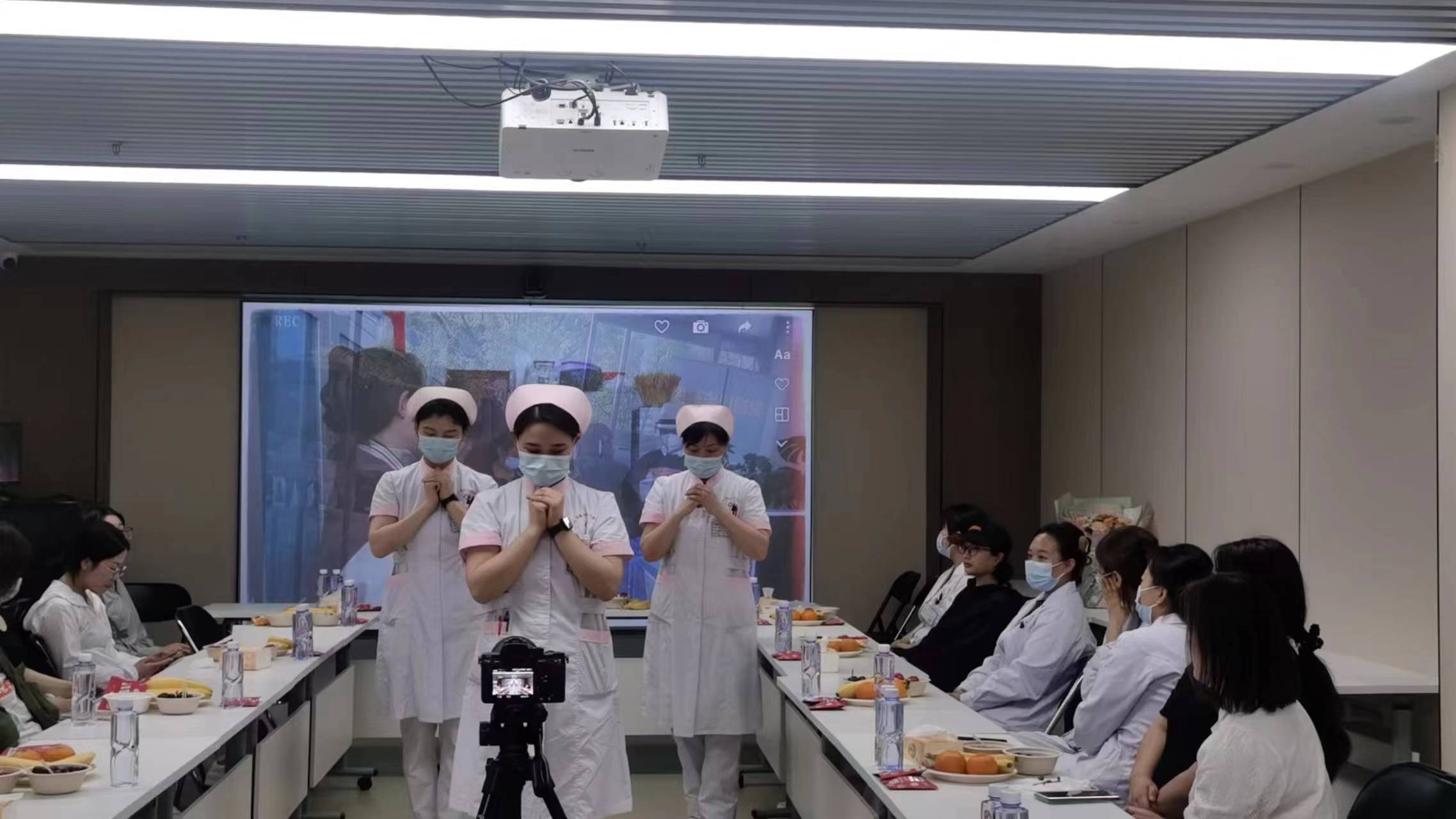 护理部邵建敏精心准备了朗诵表演,分享了身为护理工作者的心得与感触,触动了每一位在场人员的心弦。护理部赵楠、邵建敏、王密红表演“平凡的天使”手势舞,展现了中医护理人工作之余多才多艺的一面,赞美了护士们如天使般的形象。