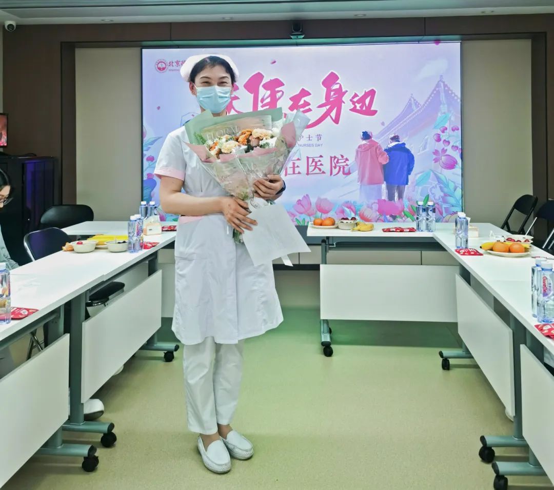 护士长韩芳作为护士代表发言:“很开心能在德胜门中医院工作,希望用细心、爱心、责任心照顾好每一位病人,在平凡的岗位上书写不平凡的人生。祝大家健康、美丽、越来越好。”