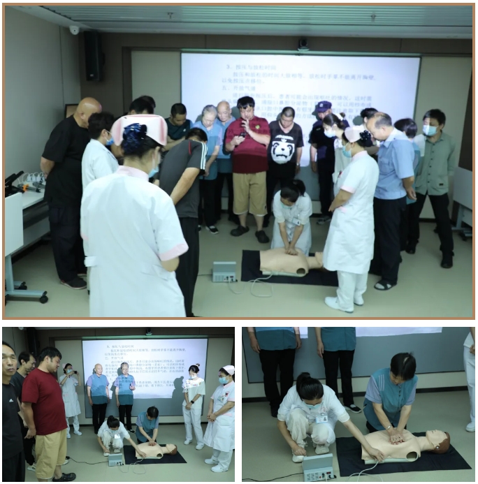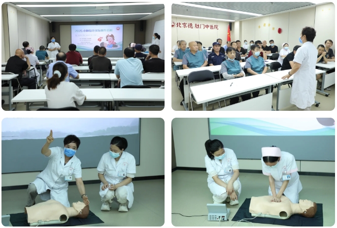 培训期间,北京德胜门中医院的职工们全情投入、专注聆听,课堂学习热情高涨,氛围热烈。理论课程结束后,全体学员在杨玉燕主任的带领下分组开展CPR实操训练。实操时,杨主任认真观察,耐心纠正动作,确保操作规范。参训人员主动参与、默契配合,在实践中加深了对理论知识的理解与掌握。