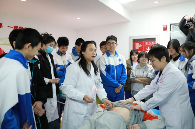 随后的特色诊疗环节让师生们大开眼界。针灸科覃祚梅医生为师生们现场演示了针灸、刮痧、耳穴、艾灸、拔罐等多种中医特色疗法。在体验环节,同学们纷纷踊跃参与,亲身体验这些中医特色疗法。有的同学感受了针灸的神奇效果,有的同学体验了刮痧的舒畅,还有的同学尝试了拔罐的神奇。